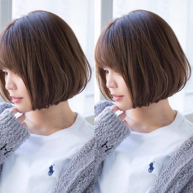 11.ทรงผมบ๊อบสั้นยาวประมาณตรงคาง ตัดหน้าม้าโดยไล่ตามรูปหน้าของเราจะทำให้ดูสวยขึ้นและดูแบ๊วขึ้นค่ะ