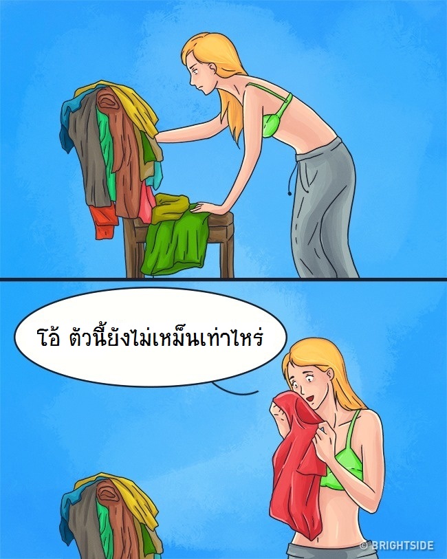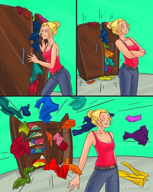 บางทีการจะเอาเสื้อผ้ามาใส่ไม้แขวนเสื้อทีละตัวอาจจะทำให้เสียเวลาและรู้สึกขี้เกียจ การเอาเสื้อผ้าไปยัดใส่ในตู้เสื้อผ้าเลยเป็นความคิดที่ดีที่สุดของคุณ ณ ตอนนั้น