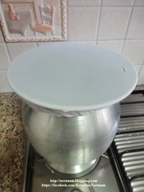 4.ให้เราเตรียมหม้อคอคอดใส่น้ำ 2/3 ของหม้อ จากนั้นขึงผ้าให้ตึง มัดให้แน่น จากนั้นทำการเจาะรูบนปากหม้อ เพื่อให้ไอน้ำลอยขึ้นมาได้บ้าง จากนั้นยกหม้อขึ้นเตา แล้วใช้ไฟกลางพอ ปิดฝาครอบไว้จนน้ำเดือด