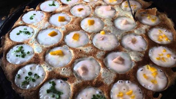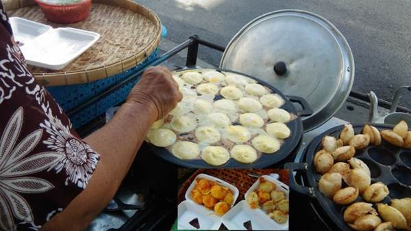 4.ต่อจากนั้นให้เราทำการโรยหน้าที่เราชอบ ไม่ว่าจะเป็น ต้นหอม, ข้าวโพด, เผือก แล้วแต่ความชอบของแต่ละคน แล้วรออีกสักครู่ จากนั้นทำการใช้ช้อนตักขนมครกออกมาจากหลุม แค่นี้เราก็จะได้ขนมครก ขนมโบราณของคนไทยมาทานแล้วค่ะ