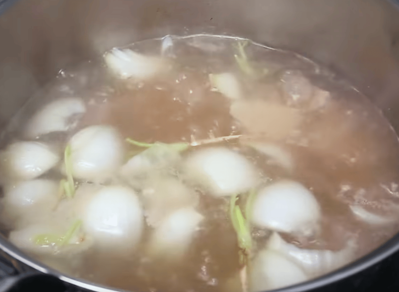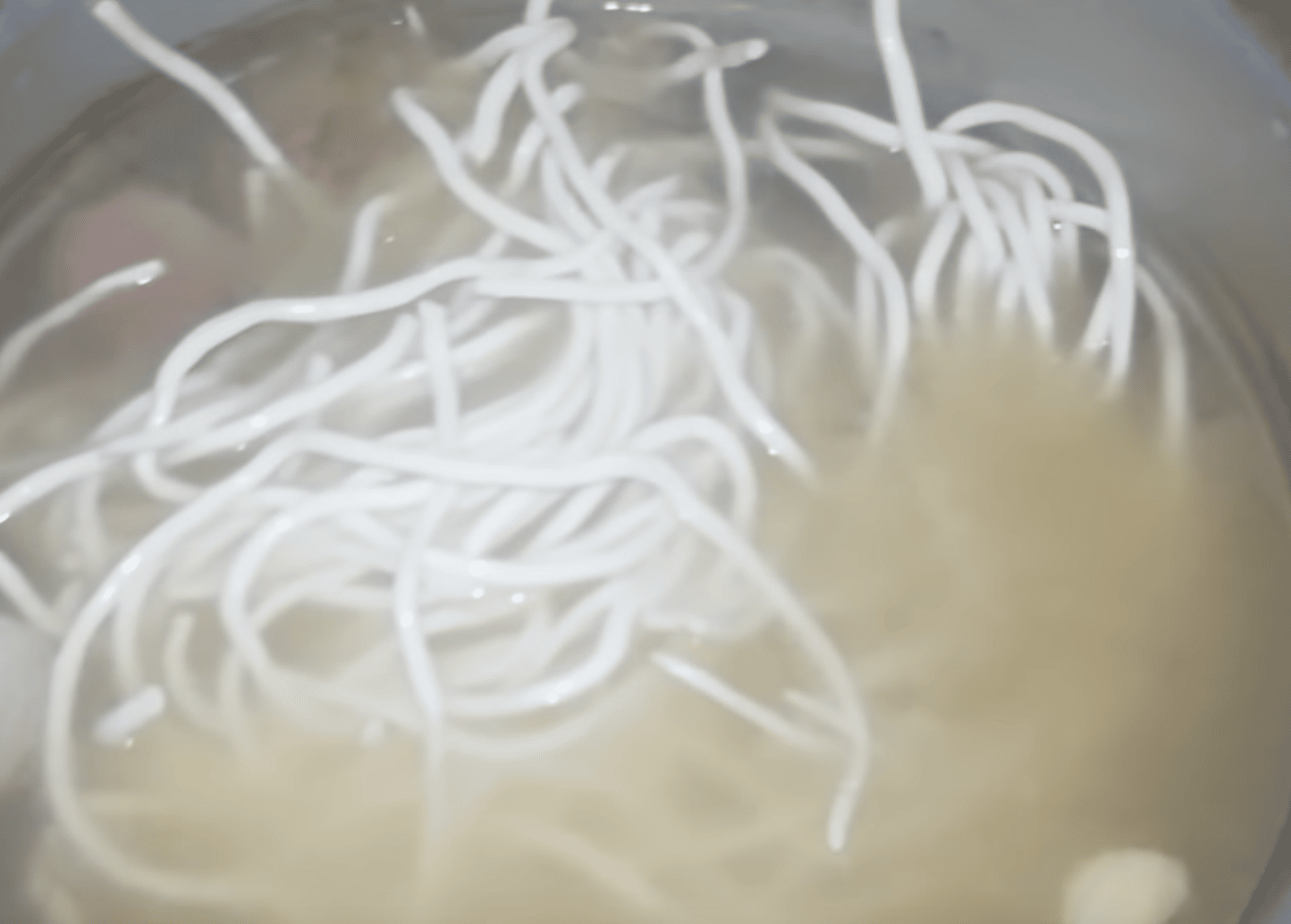 2. หลังจากนั้นให้เราทำการใส่เส้นขาวเปียกลงไป แล้วปรุงด้วยน้ำปลา แล้วต้มทิ้งไว้ประมาณ 15 นาที หรือจนกว่าเส้นจะสุกได้ที่ วิธีสังเกตง่ายๆว่าเส้นสุกได้ที่หรือยังก็คือ หากเส้นสุกแล้วจะลอยตัวขึ้นเหนือน้ำ และมีลักษณะใสขึ้น จากนั้นให้เราใส่หอมเจียวลงไป 1-2 ช้อนโต๊ะ (แบ่งไว้โรยหน้าตอนท้ายด้วยนะ)